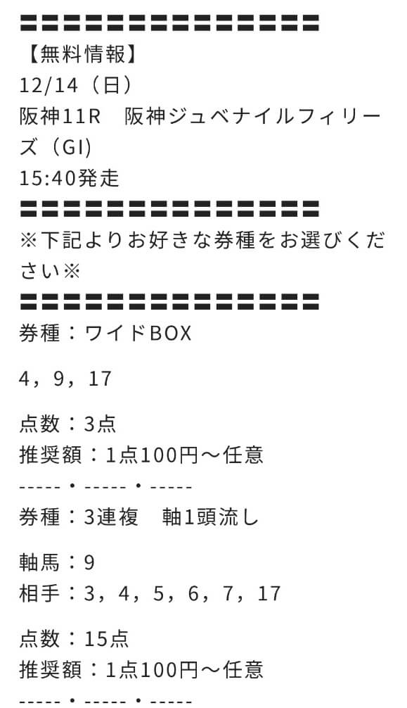2025/12/14 阪神11R 阪神ジュベナイルフィリーズ 18,000円 73,000円 G1 3連複・ワイド