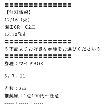 2025/12/11 園田7R C3一 13,000円 0円 一般 3連複・ワイド