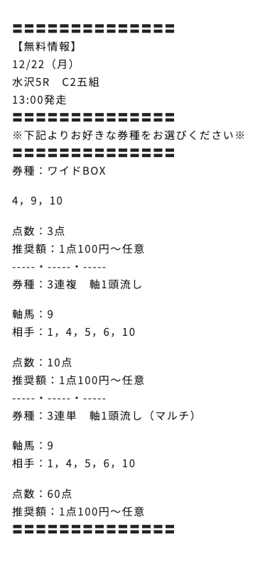 2025/12/22 水沢5R C2五組 3,000円 3,700円 一般 ワイド