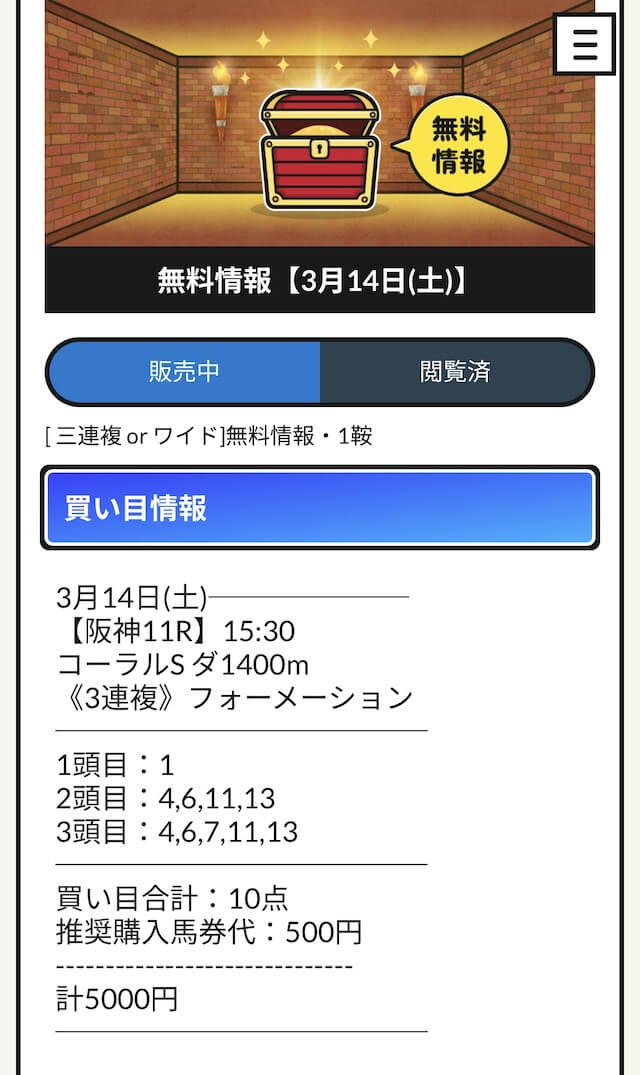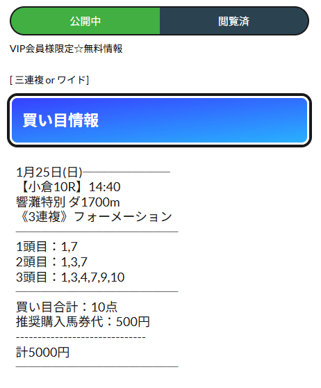 情報料金が必要なぶん、精度にも期待がかかる有料予想。