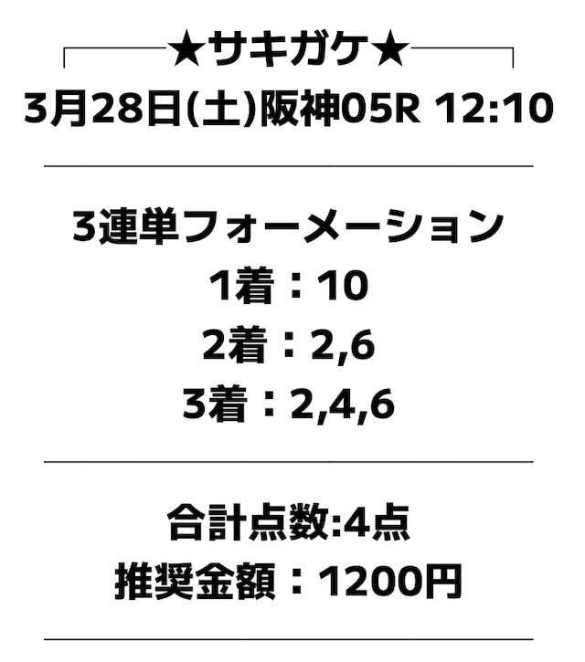対してサキガケはどのような買い目で勝負するのか。実際に公開された買い目を見てみましょう!