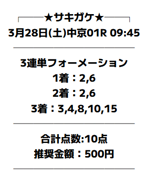 対象レースは2026年3月28日中京1R・3歳未勝利クラスです。