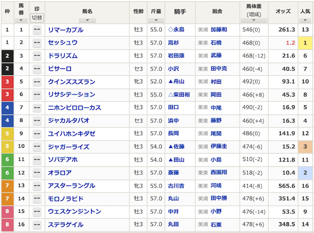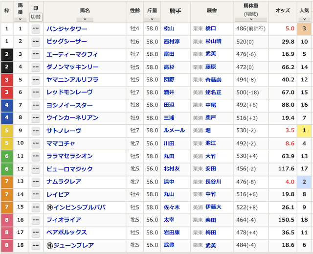 まずは出走表から見ていきましょう。