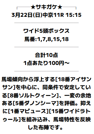 | 穴馬の激走条件 | 14点/15点 |