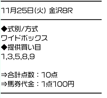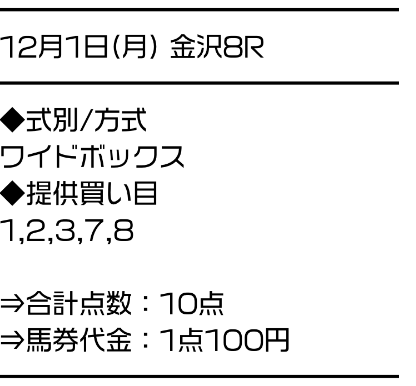2025/12/01 金沢8R C210 10,000円 13,500円 一般 ワイド