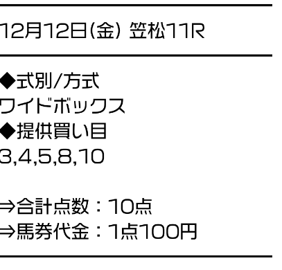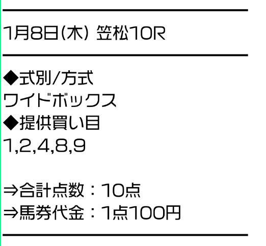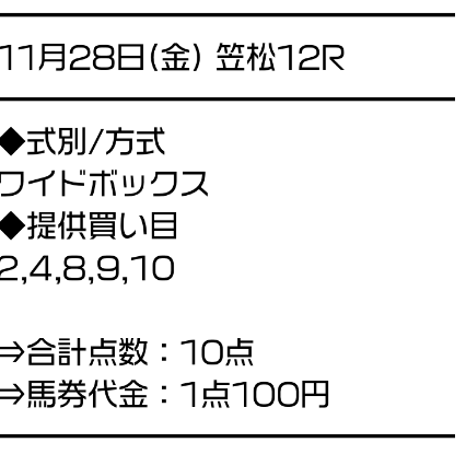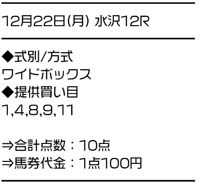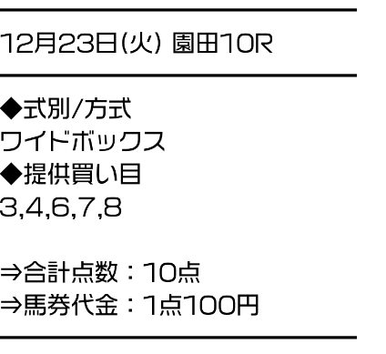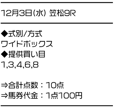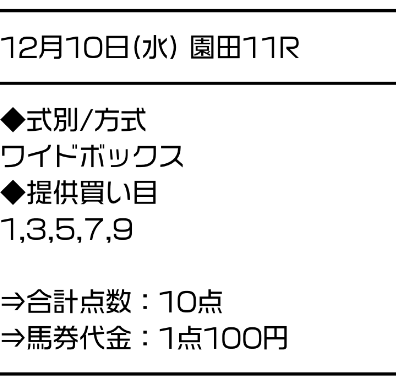 サラコレはワイドのBOXで勝負。