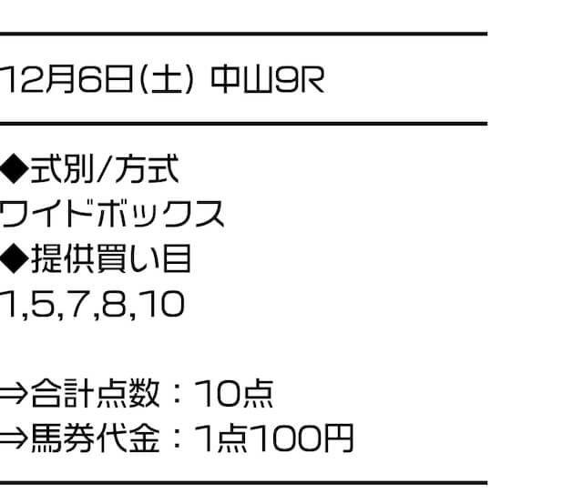 2025/12/06 中山9R 葉牡丹賞 10,000円 0円 条件戦 ワイド