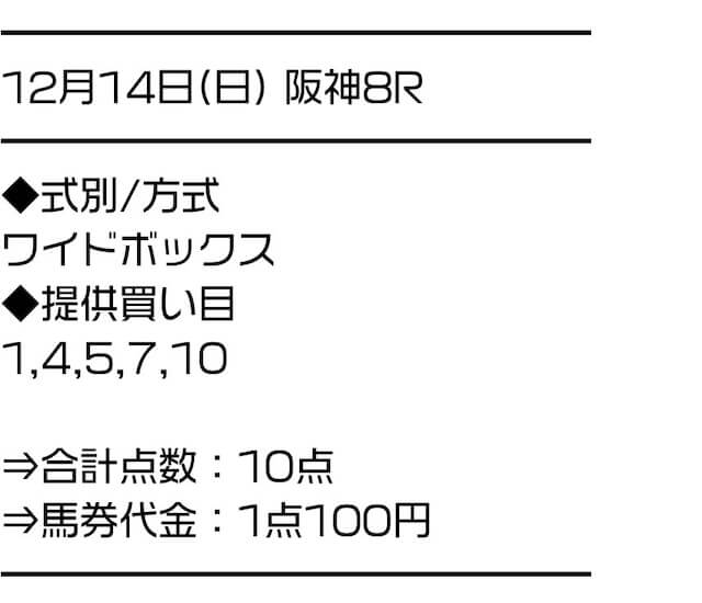 2025/12/20 阪神9R ポインセチアステークス 10,000円 25,200円 条件戦 ワイド