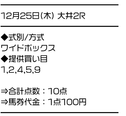 2025/12/25 大井2R C3一二 10,000円 12,700円 一般 ワイド