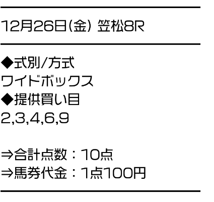 2025/12/26 笠松8R A5・B3組(AB) 10,000円 28,800円 一般 ワイド