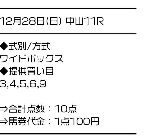 2025/12/28 中山11R 有馬記念 10,000円 77,000円 G1 ワイド