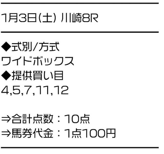 2026/01/03 川崎8R 七福即生特別(C1) 10,000円 17,000円 一般 ワイド