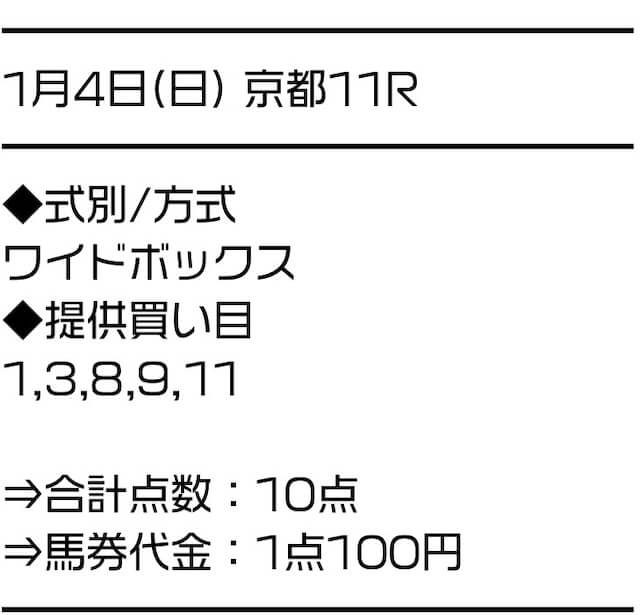 2026/01/04 京都11R スポーツニッポン賞京都金杯 10,000円 0円 G3 ワイド