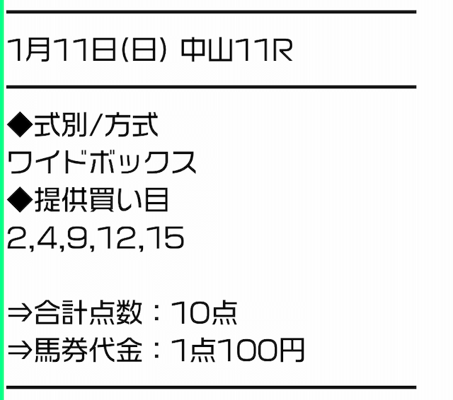 分析とは別で、サラコレが最も稼いだ無料予想をご紹介します。