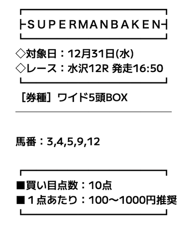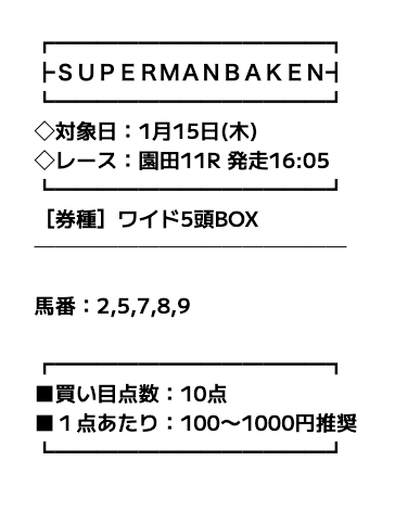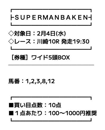 ということで、スーパーマンバケンの予想を徹底分析し、当たりやすい予想について皆様に共有します。