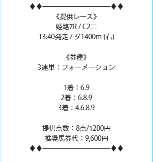 券種は馬連・ワイドという指定がありますが、軍資金に余裕があるならどちらも。