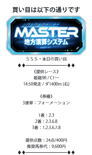 割と安直な考えでも勝てるんじゃないかと思われますが、トリプルエスの狙いは以下になりました。