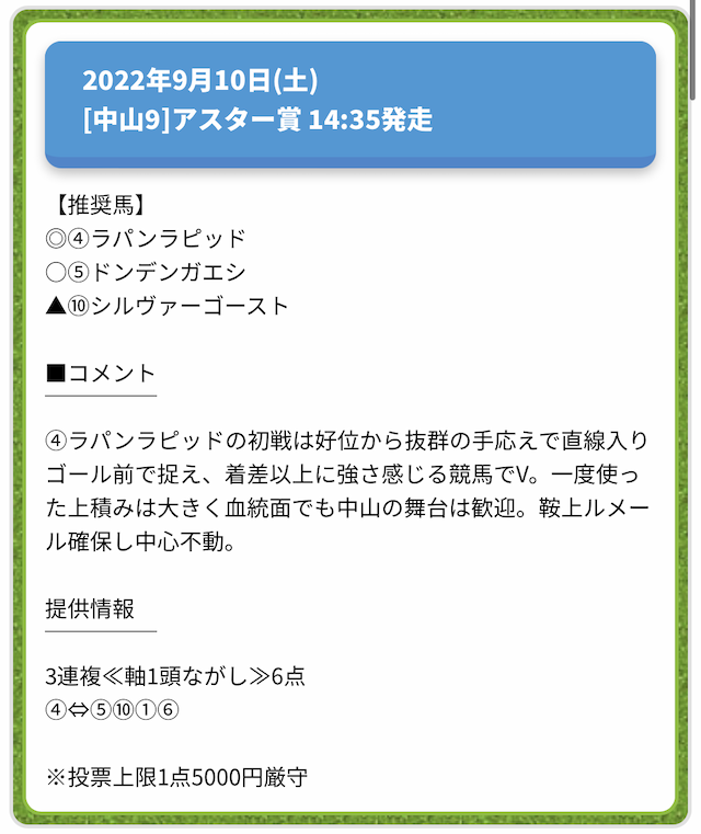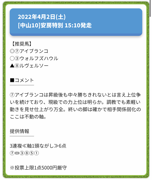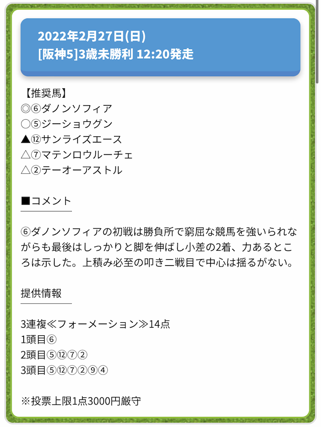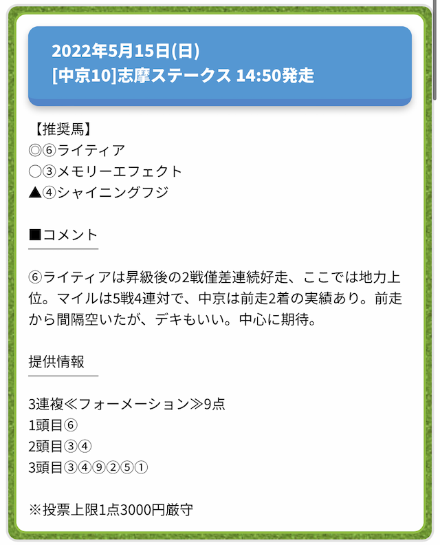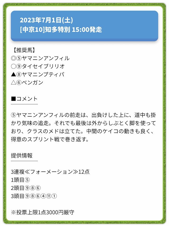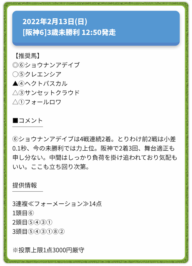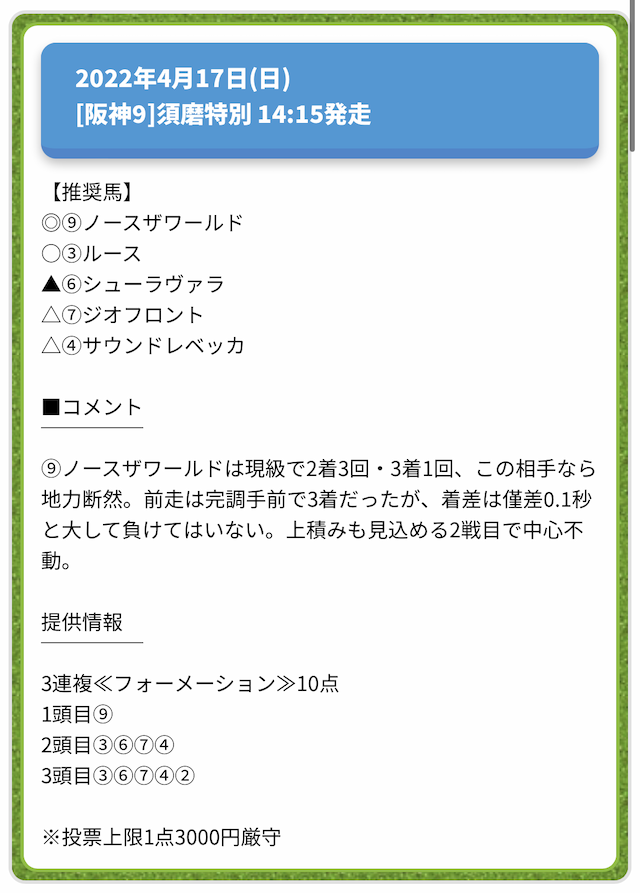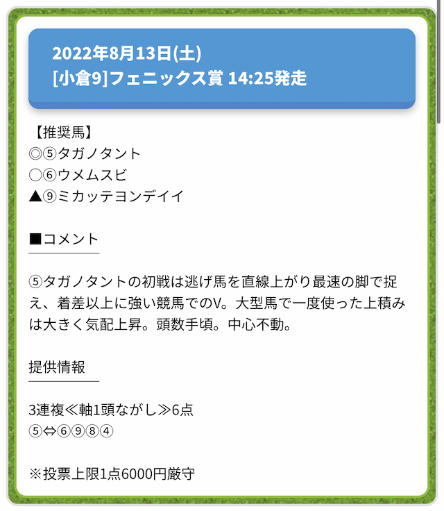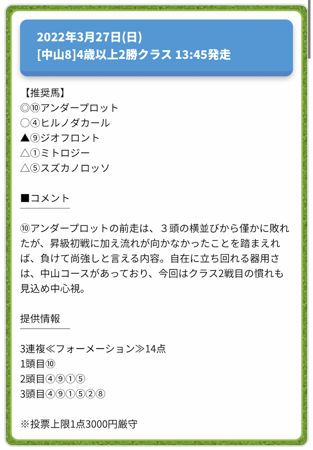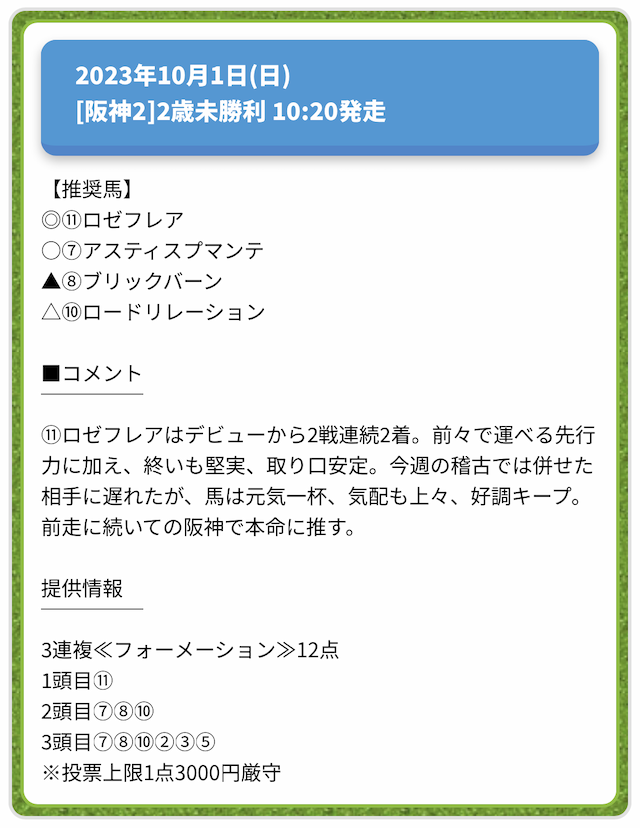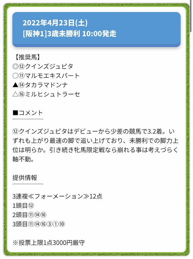 情報料金が必要なぶん、精度にも期待がかかる有料予想。