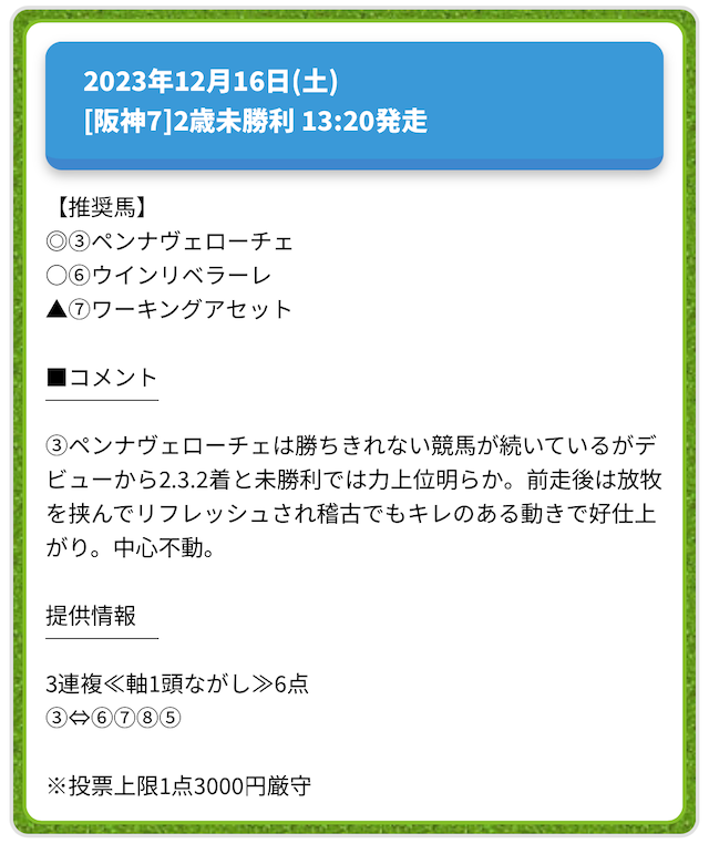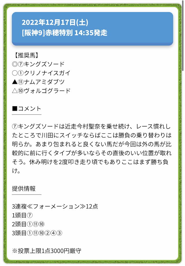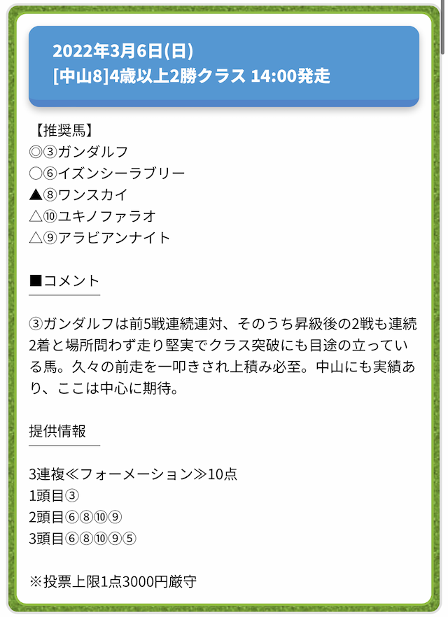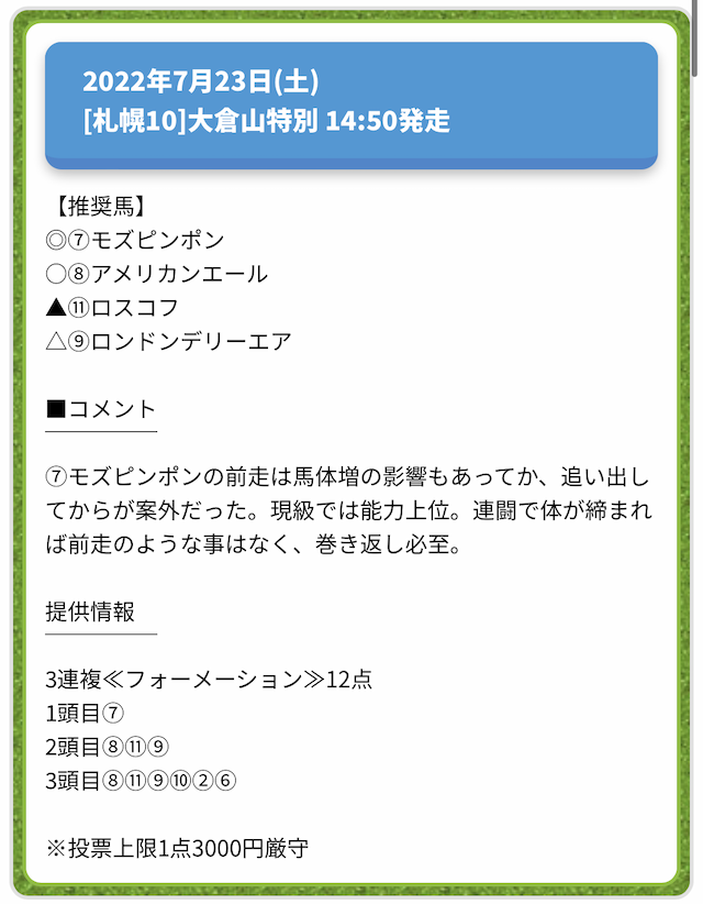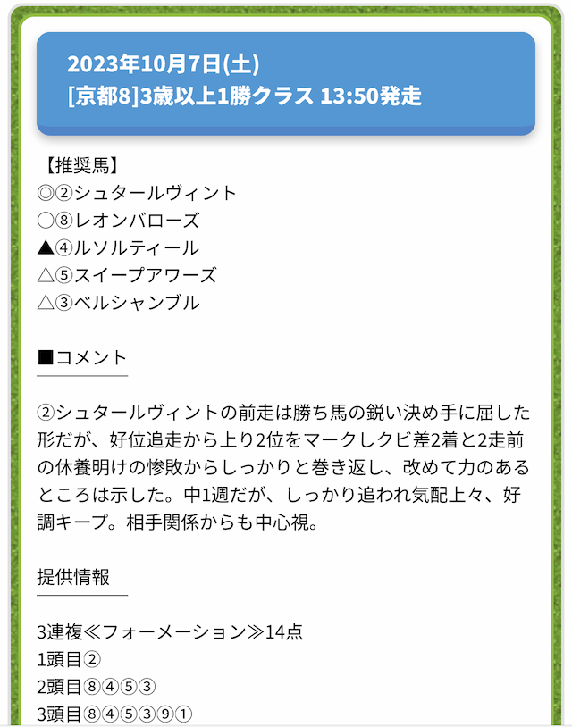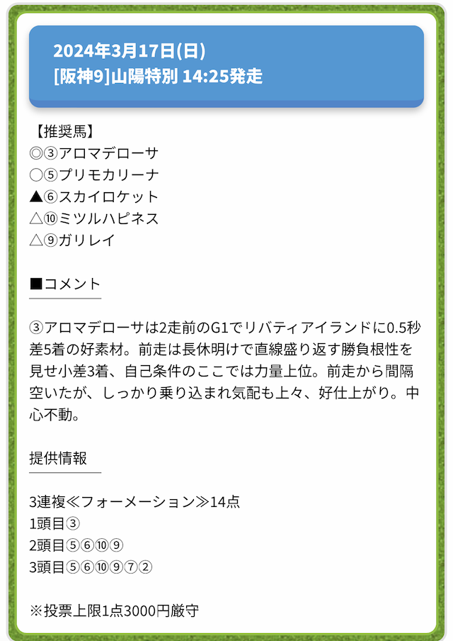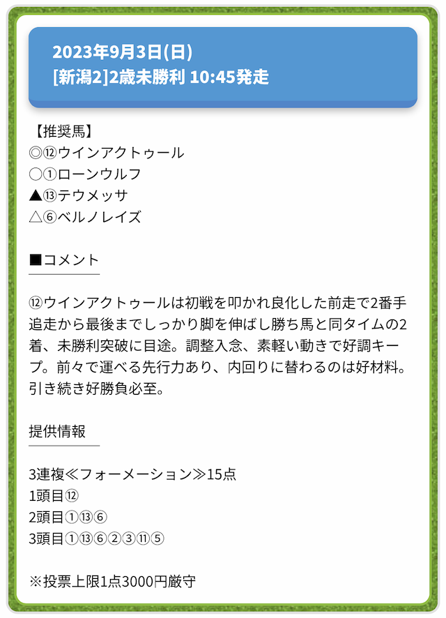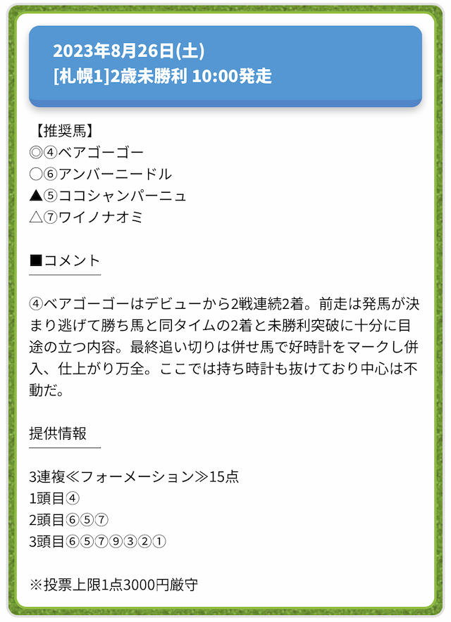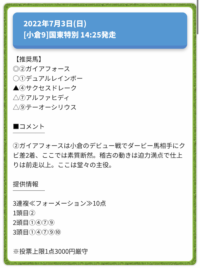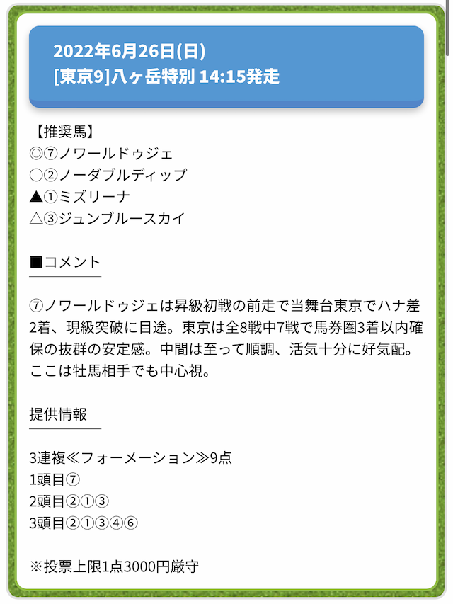 情報料金が必要なぶん、精度にも期待がかかる有料予想。