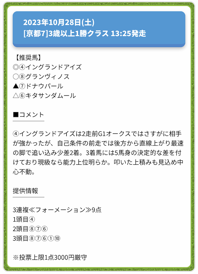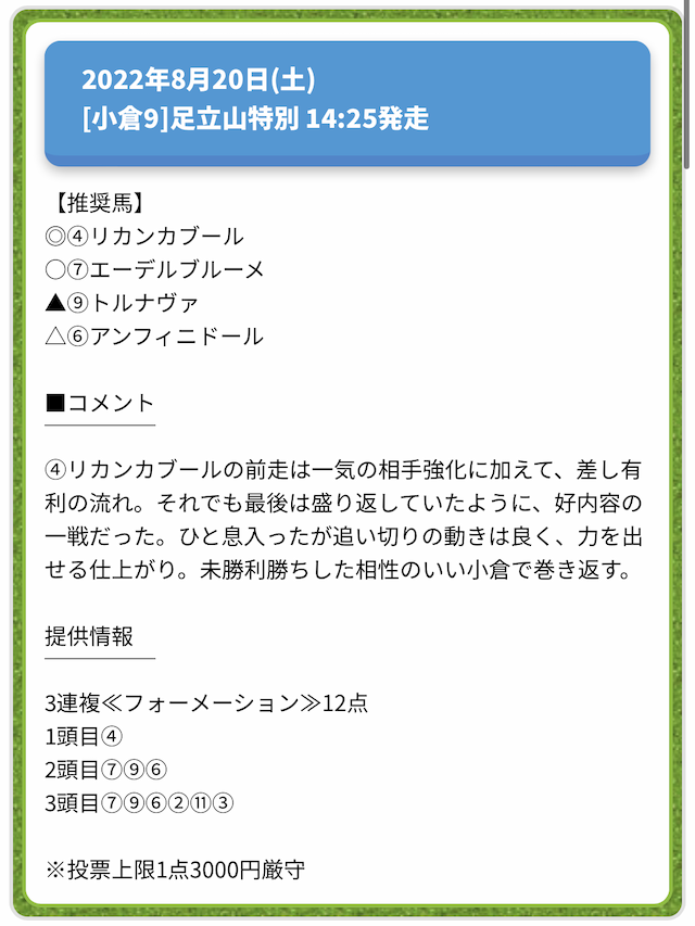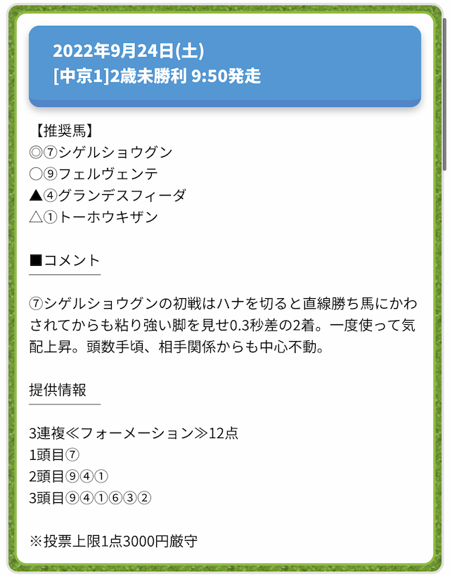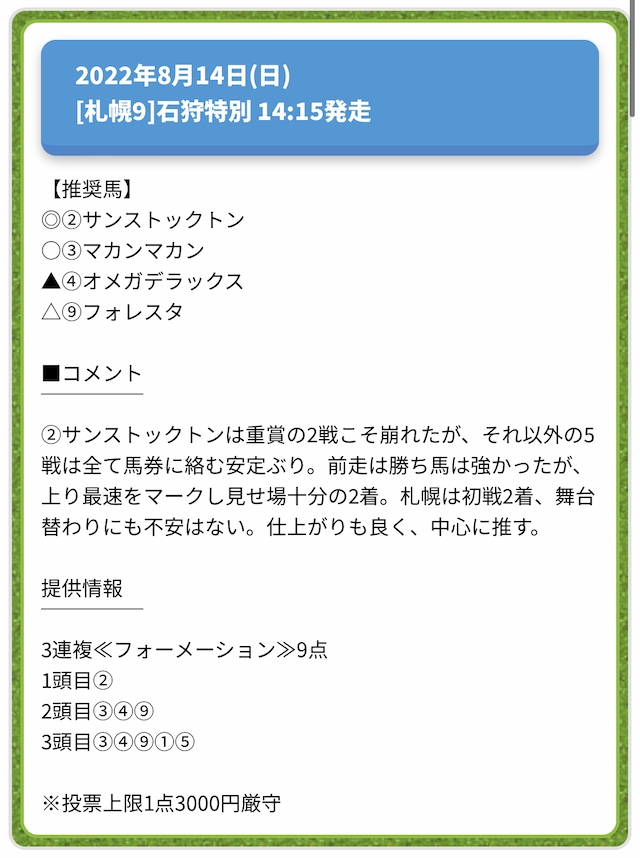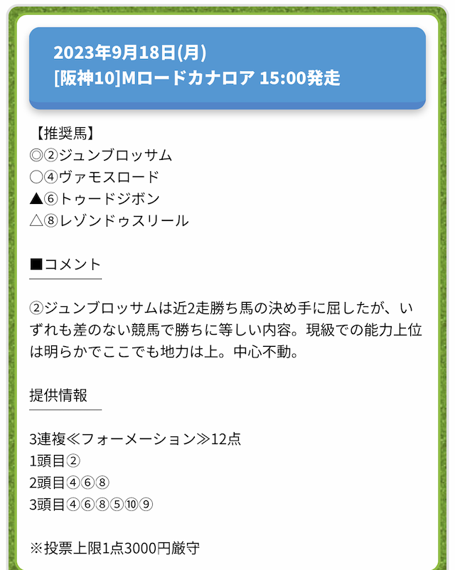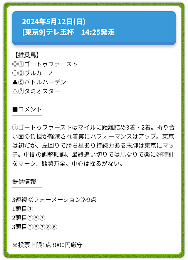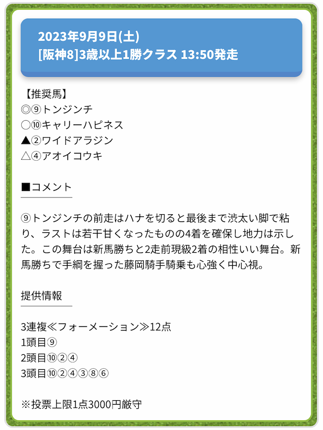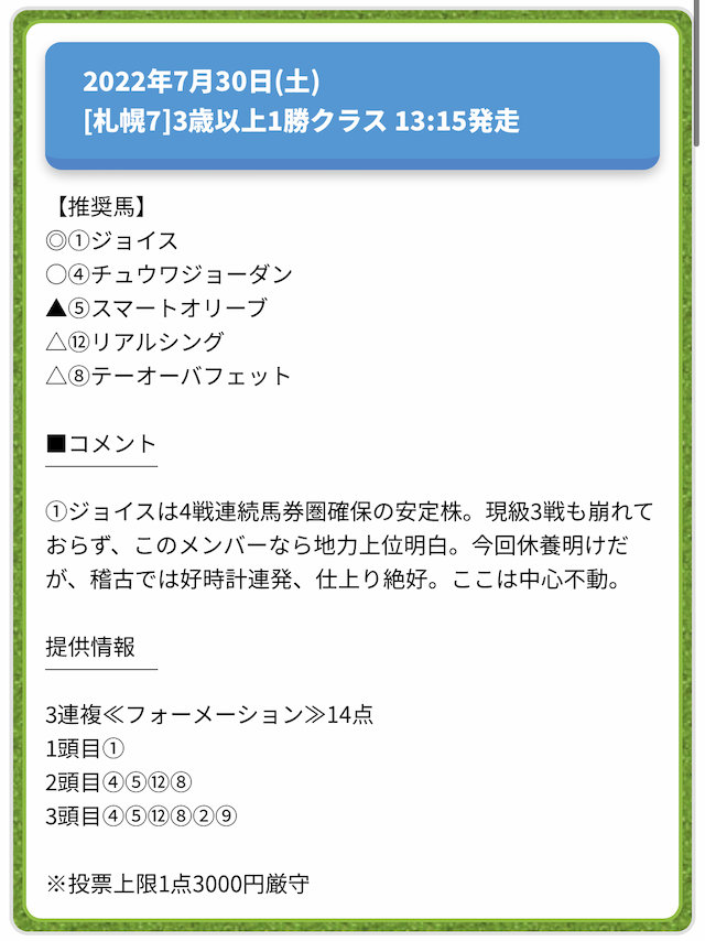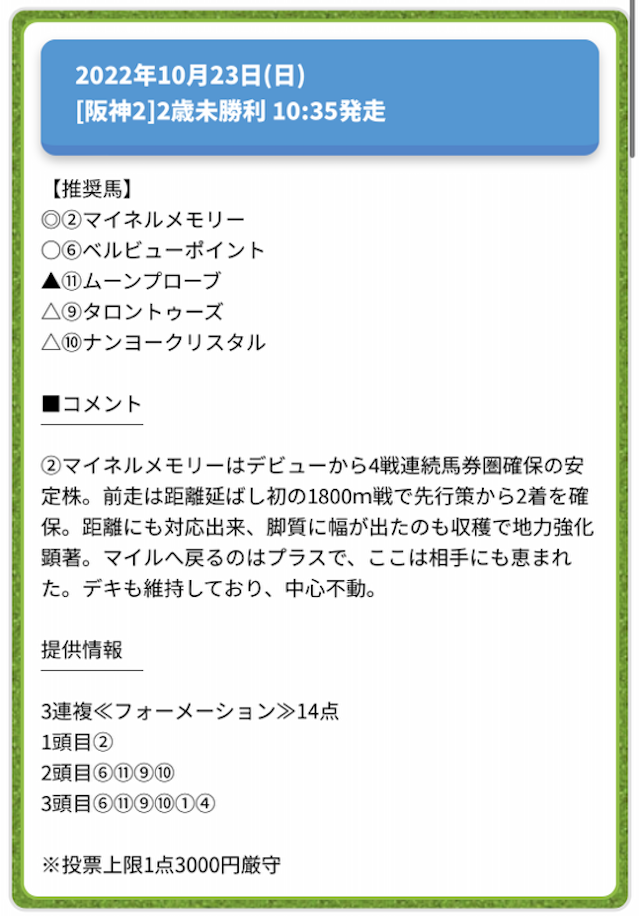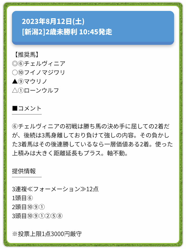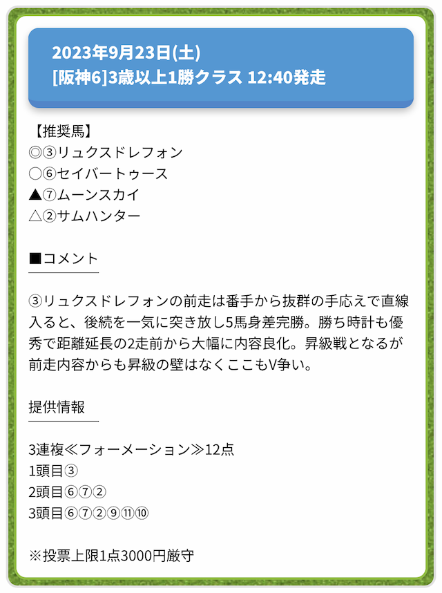 情報料金が必要なぶん、精度にも期待がかかる有料予想。
