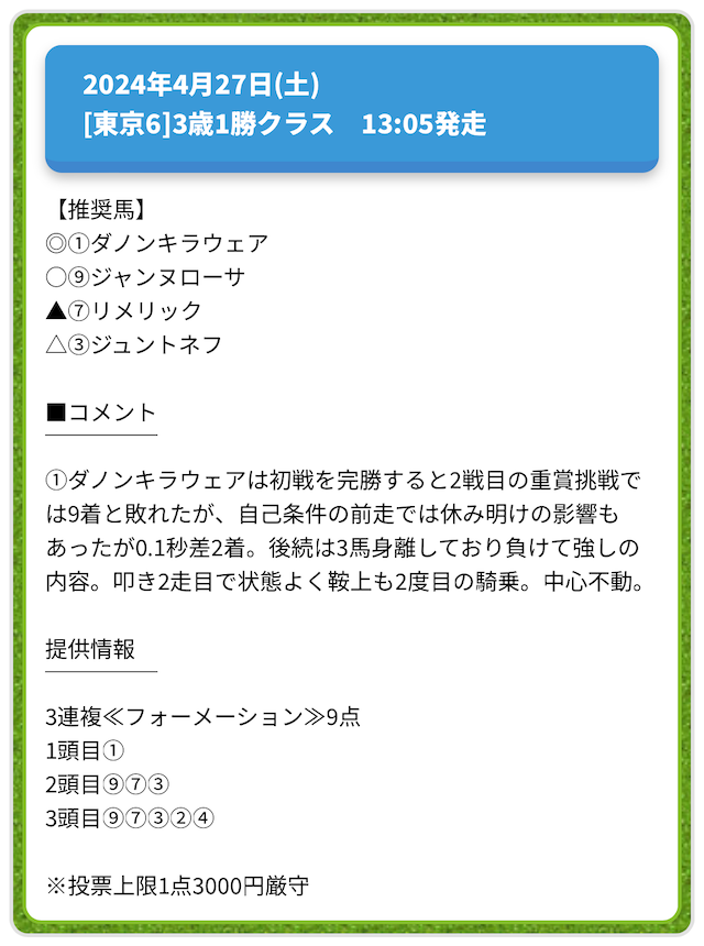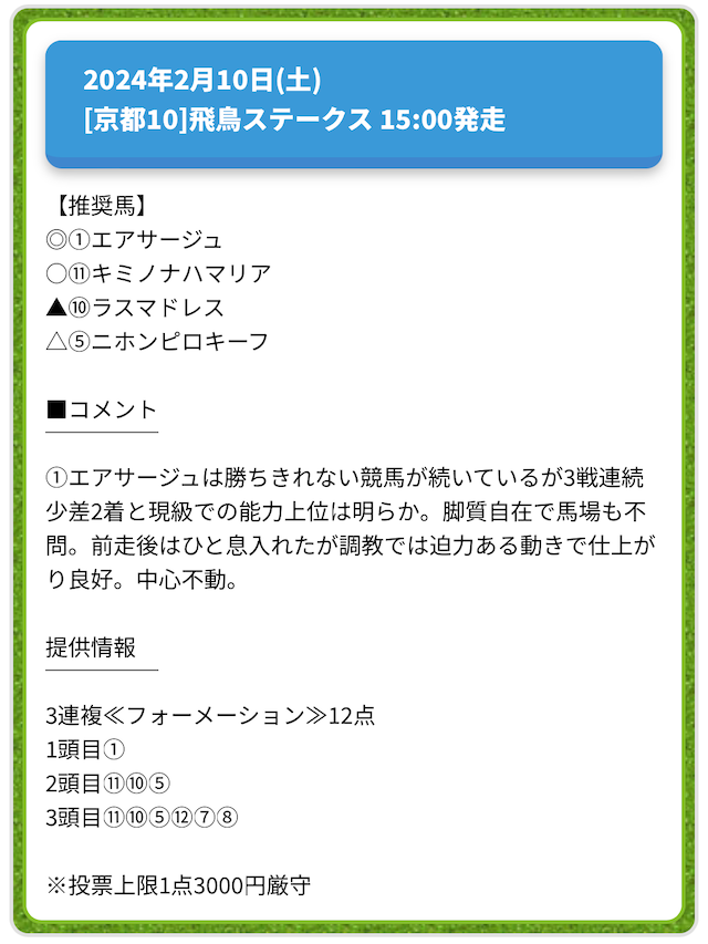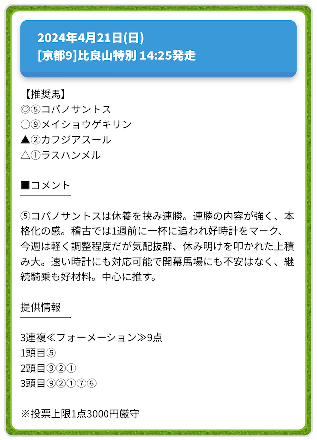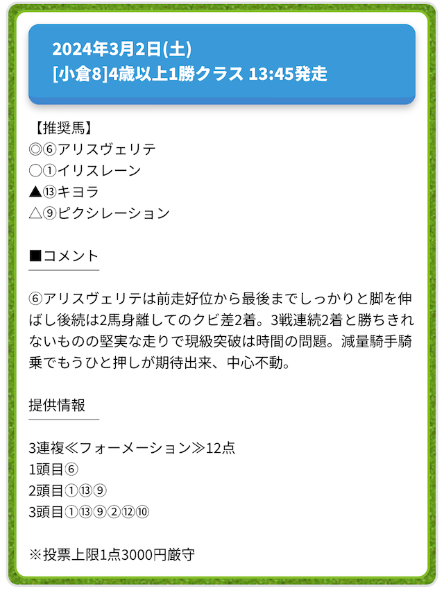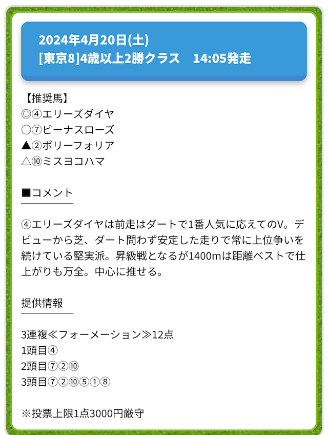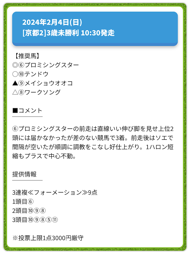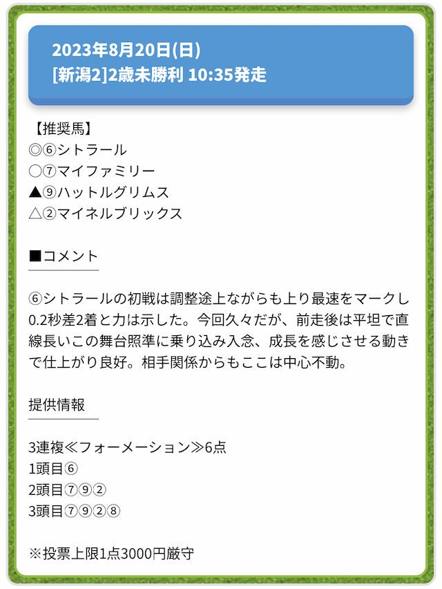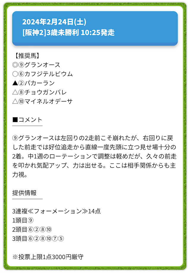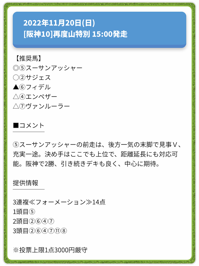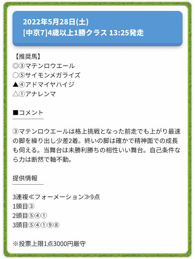情報料金が必要なぶん、精度にも期待がかかる有料予想。