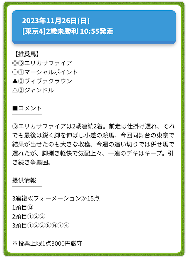 しかし、優良認定したとはいえ、予想が100%当たることはありません。調子の良い日もあれば悪い日もあるのが現実。