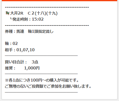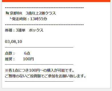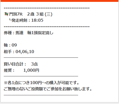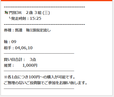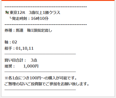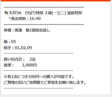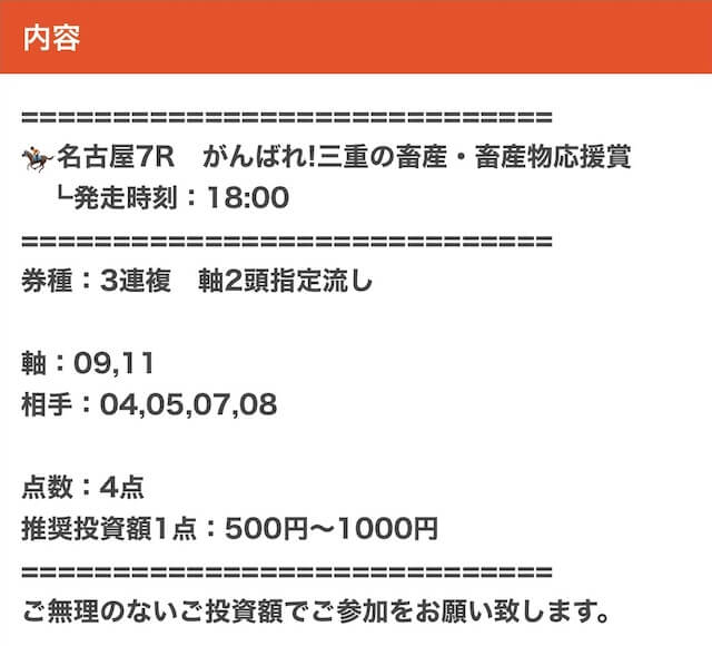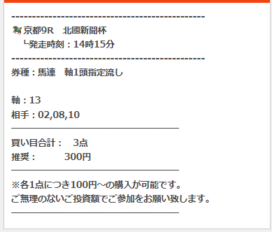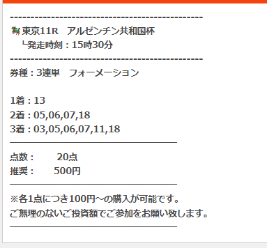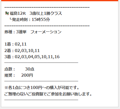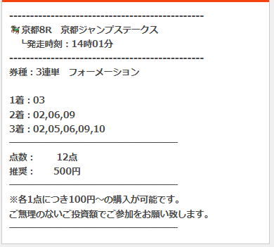 直近で参加したのは『蹄音の覇者』という有料プランの予想。