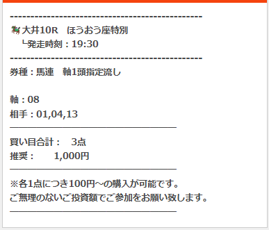 有料予想は一度で帯も狙える抜群の回収率が魅力です。