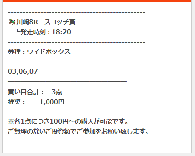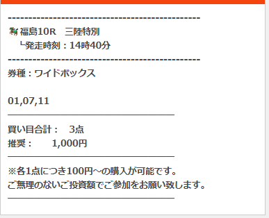 無料予想では安定した予想で無料とは思えないくらい稼ぐことができました。