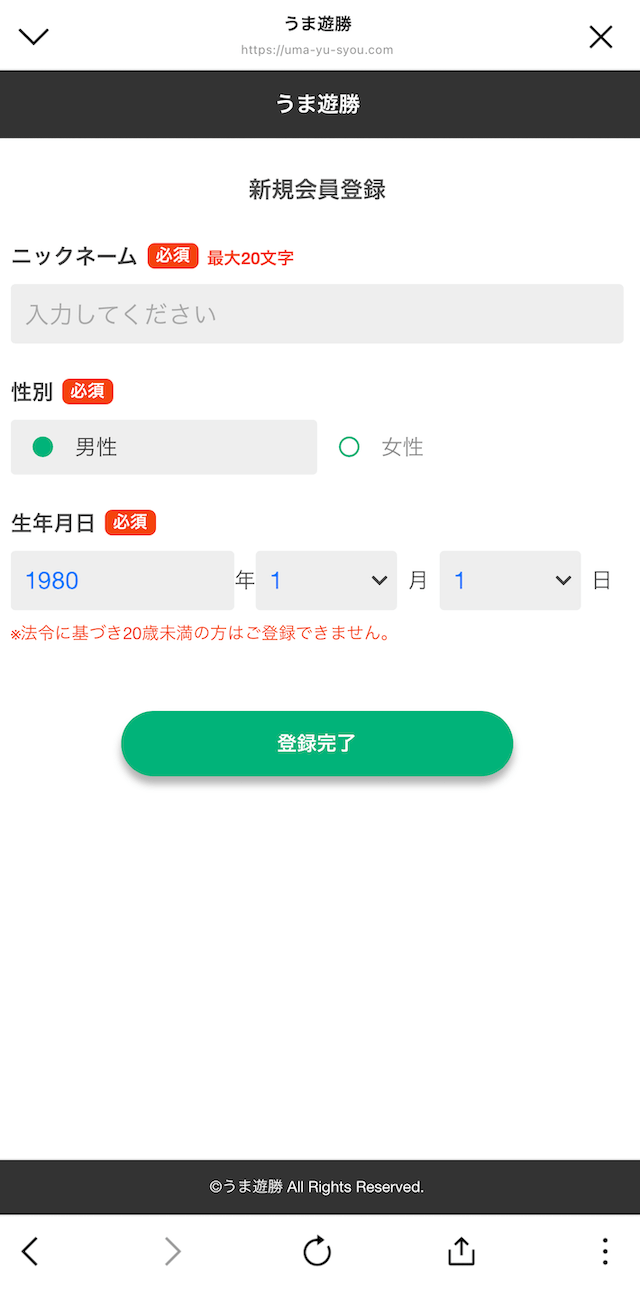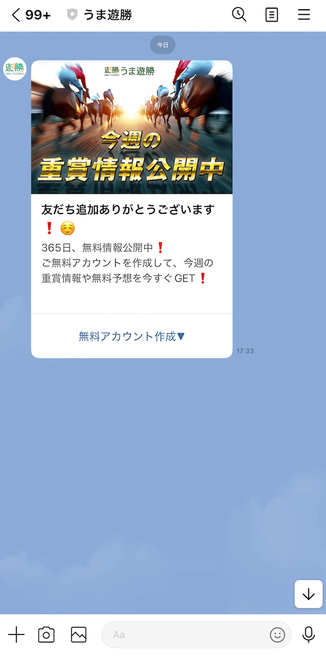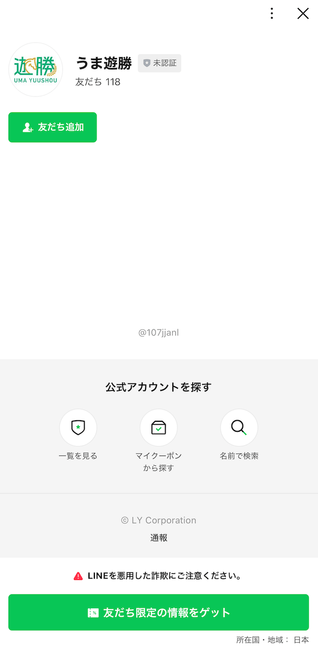 うま遊勝は、LINEのみでの登録となります。