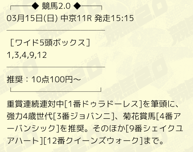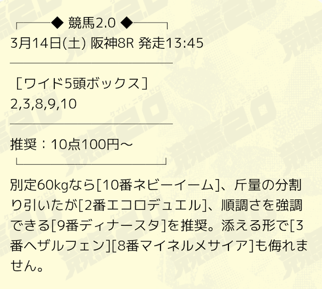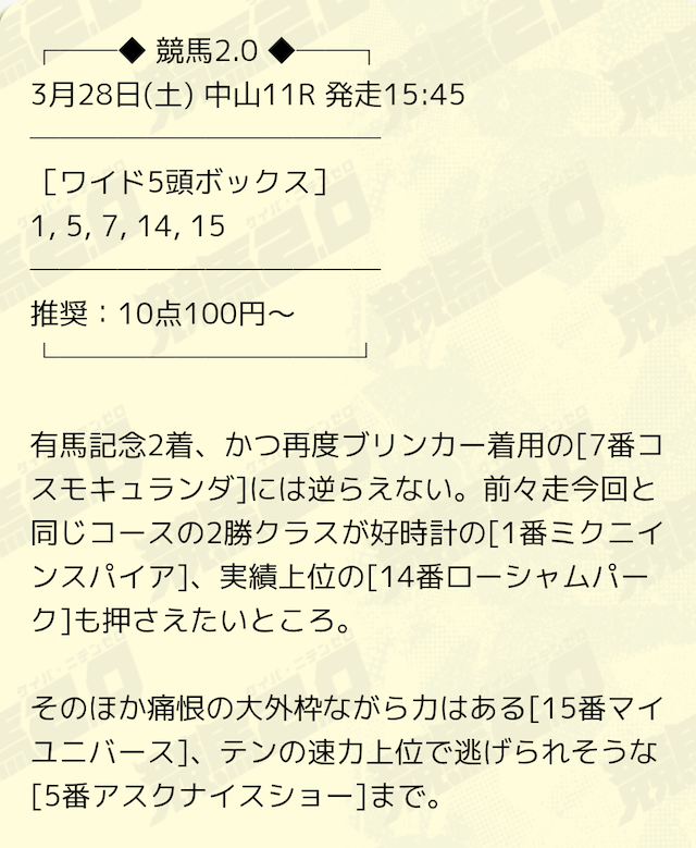 リスクとリターンを兼ね備えた有料予想と言えるでしょう。