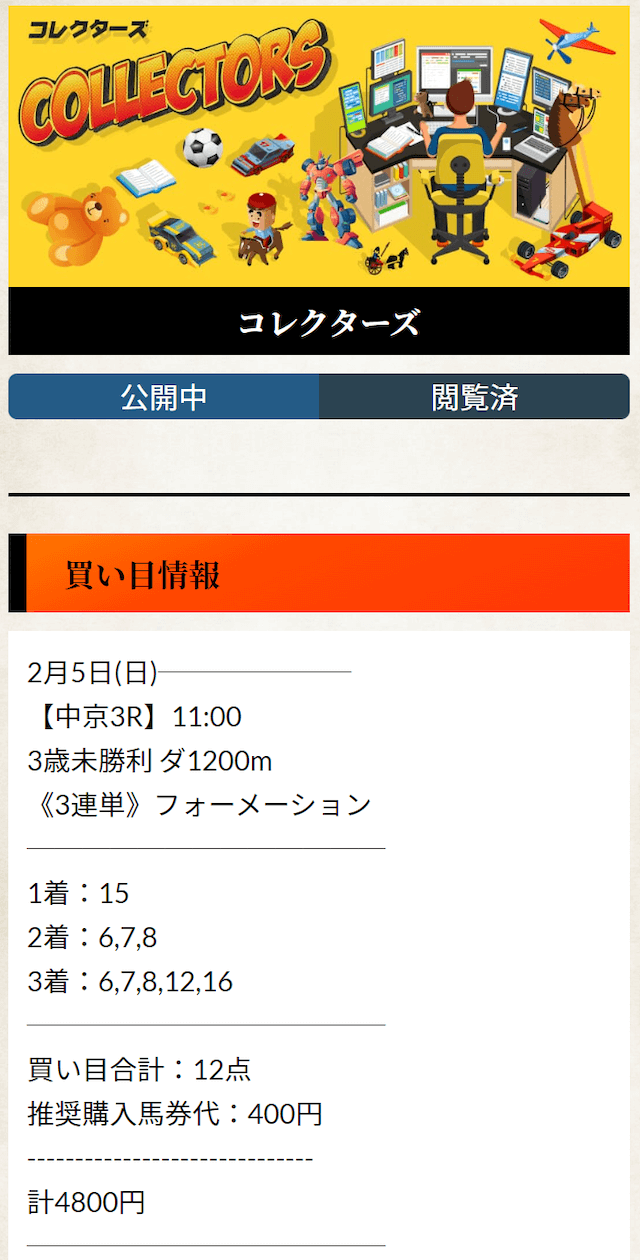 直近で参加したのは『コレクターズ』という有料プランの予想。