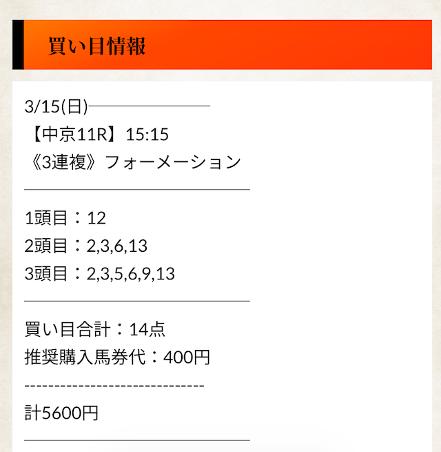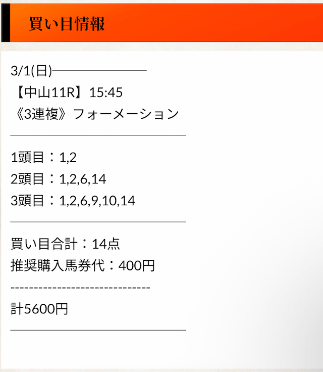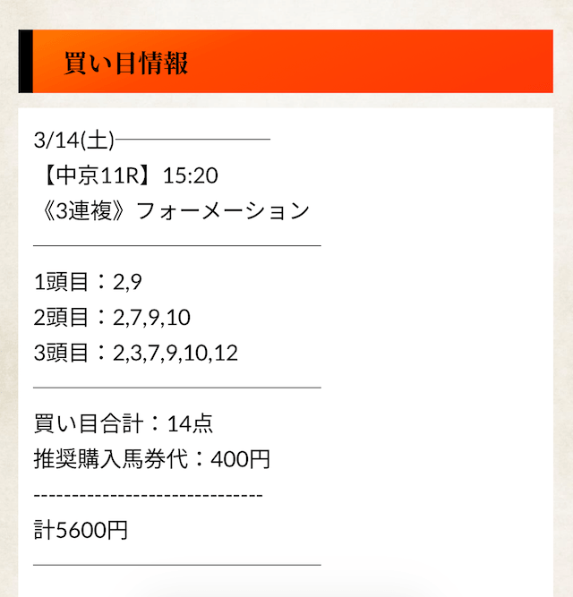 全体としては高精度の有料予想というより、人気馬を軸に無難に形を整えたフォーメーションという印象です。