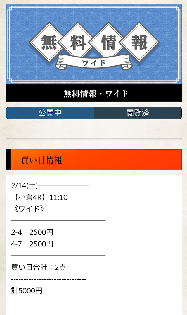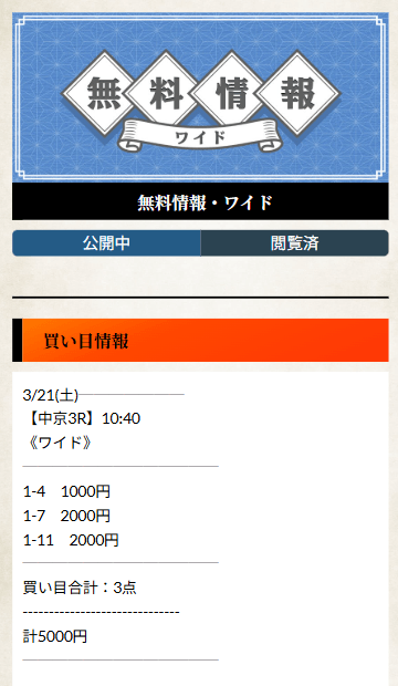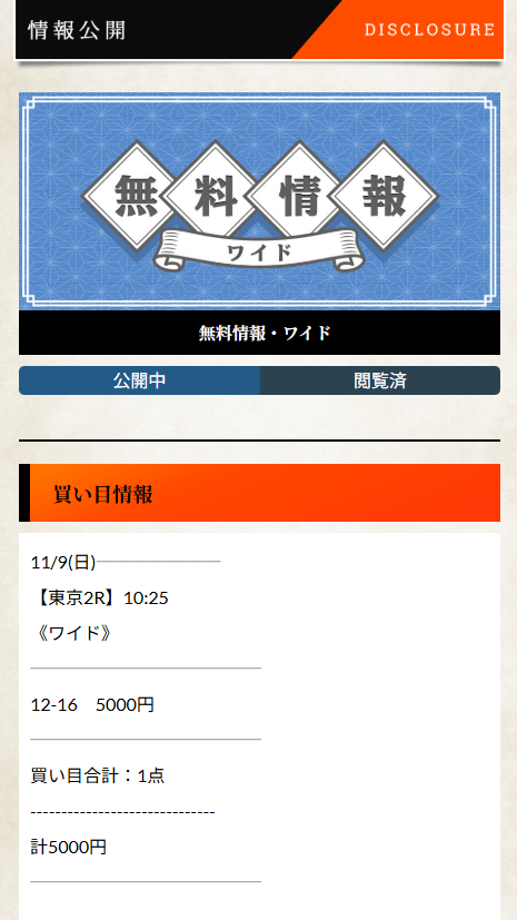 無料予想は単体で稼ぐには回収率が低めに設定されているため、コツコツ稼ぎたい方や初心者の方にオススメ。
