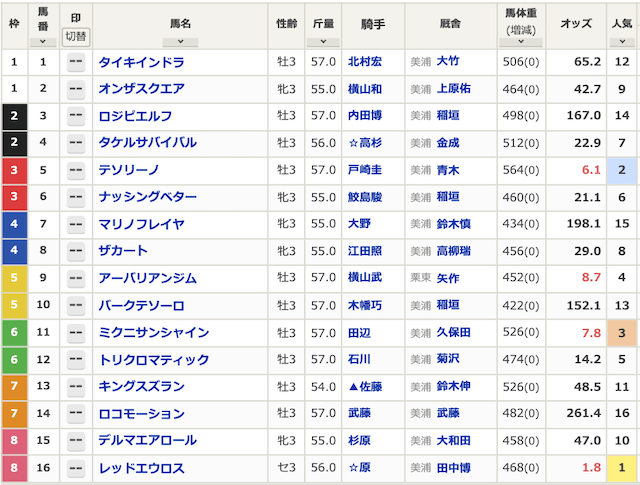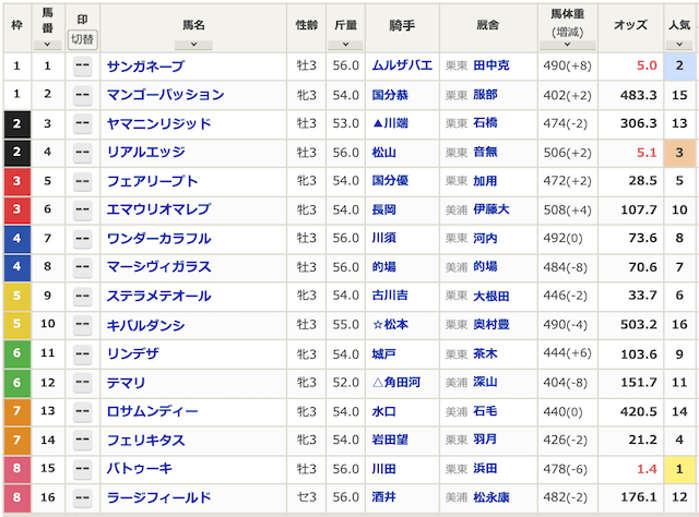まずは出走表から見ていきましょう。