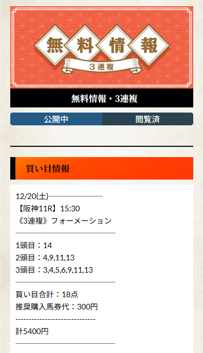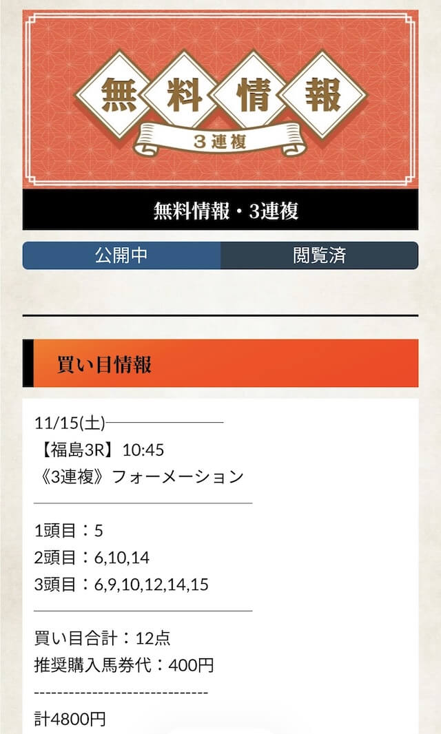 ここからは、競馬予想サイトの醍醐味である有料予想の話題に移ります!