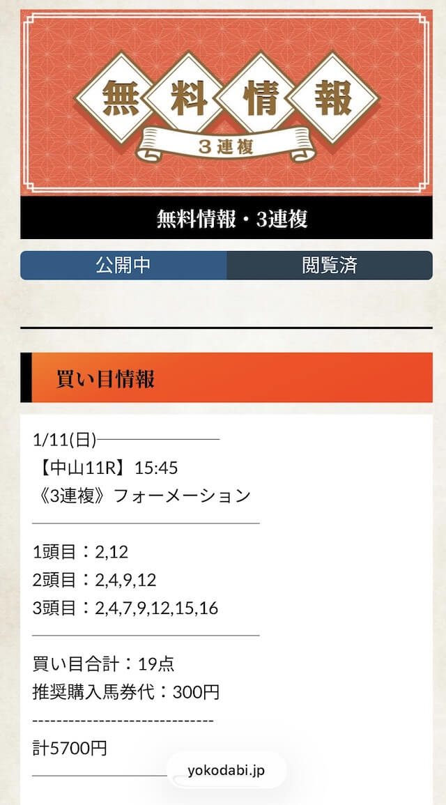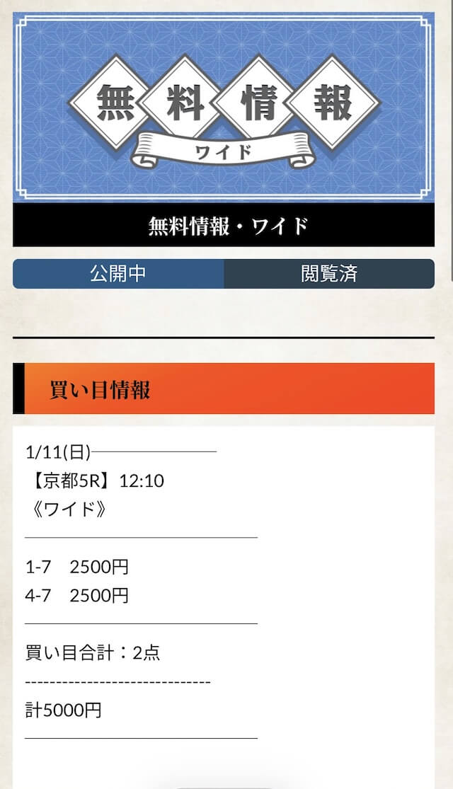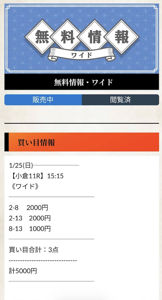 プランによって変動はあるものの、万が一外れた時のことを考えると、かなりリスクがデカい金額。そのため、有料予想を買う場合は「1回だけでも試してみるか」くらいの気持ちで参加するのがオススメ。
