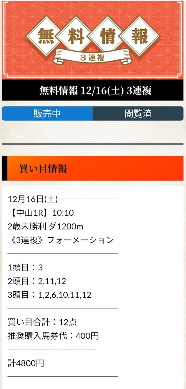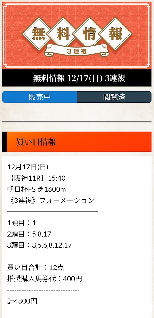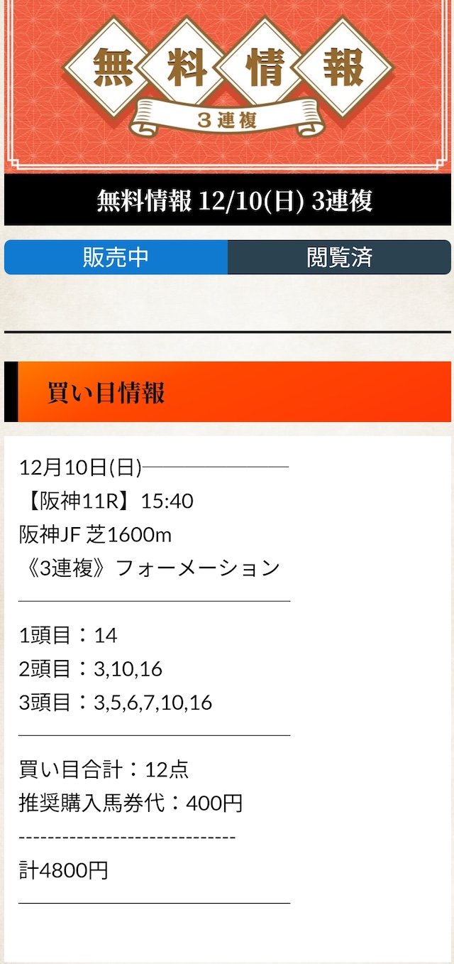 初検証のレースから素晴らしい結果を残し、無料予想・有料予想ともに稼げるサイトであることがわかりました。