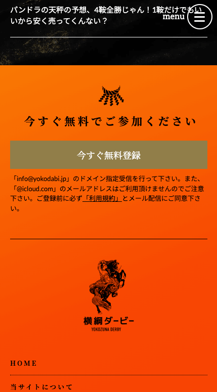 LINEでの会員登録が多いですが、横綱ダービーはメールアドレスでの登録。